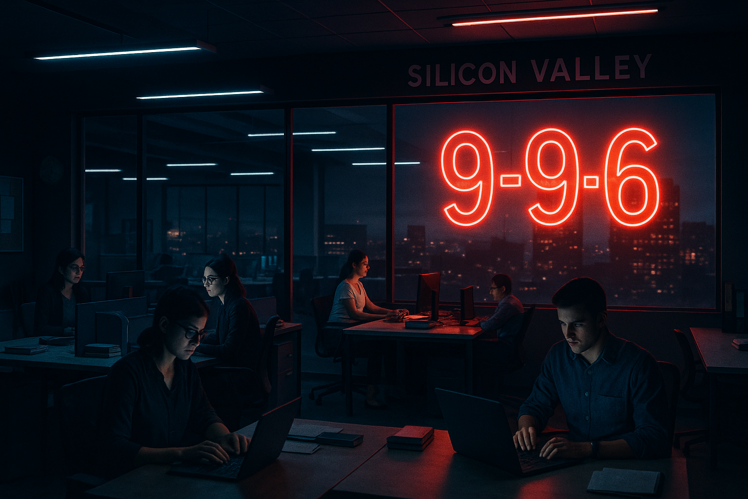 미국 스타트업, ‘996 근무제’ 부활…재택근무 끝나고 워라밸 무너진다 중국 式 장시간 노동이 실리콘밸리에 스며드는 이유와 한국 사회에 던지는 경고