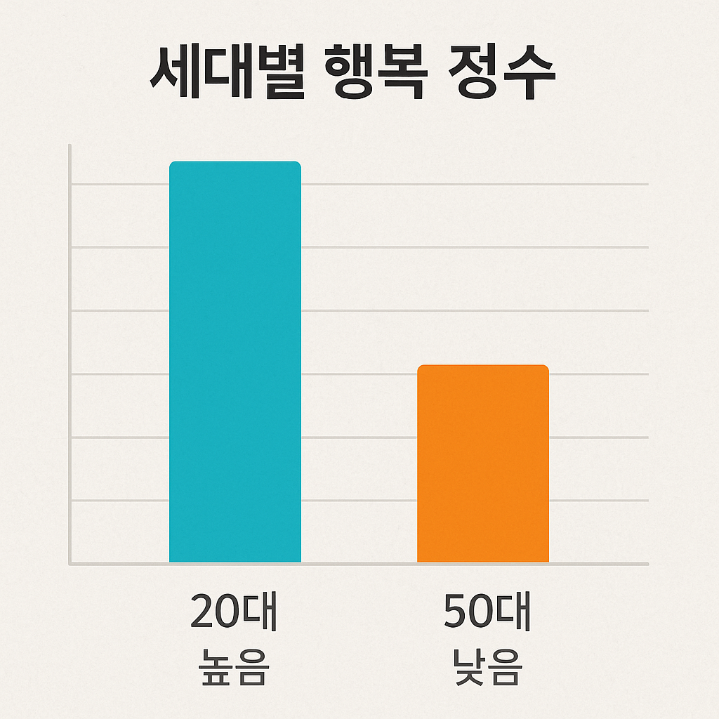 ) 중앙일보 (2025.9.12) — “20대는 ‘행복하다’ 68%, 50대 이상은 ‘불행하다’ 절반 넘어” 한국경제 (2025.9.10) — “세대별 행복 격차 뚜렷… 50대 이후 삶의 만족도 급락” 동아일보 (2025.9.08) — “은퇴·노후 불안이 50대 불행감 키워… 청년은 ‘지금 순간에 충실’” 조선일보 (2025.9.07) — “한국인의 행복 조사, 세대 갈등 아닌 세대 격차로 드러나” 연합뉴스 (2025.9.05) — “행복도 조사: 청년층 긍정 응답↑, 중장년층·노년층 만족도↓” -------------------------------------------------- “한국 사회, 세대별 행복 격차 뚜렷하다” — 최근 발표된 한 여론조사 결과가 사회적 반향을 불러일으켰습니다. 언론 보도에 따르면, 20대 청년층은 상대적으로 행복하다고 응답한 비율이 높았지만, 50대 이상 중장년층은 불행하다고 답한 비율이 크게 증가했다고 합니다. 이 결과는 단순히 세대별 기분 차이를 보여주는 것이 아닙니다. 한국 사회에서 세대별 행복도가 얼마나 큰 격차를 보이고 있는지를 단적으로 드러낸 것입니다. 흥미로운 점은, 청년 세대가 경제적 어려움과 취업난을 겪고 있음에도 불구하고 “행복하다”는 응답을 내놓고 있다는 사실입니다. 반면, 상대적으로 안정적인 직장 생활이나 자산을 확보했을 것으로 보이는 중장년층이 오히려 더 큰 불행감을 호소하는 모습은 역설적입니다. 여기에는 심리적, 사회적, 경제적 요인이 복합적으로 얽혀 있습니다. 젊은 세대는 아직 기대치가 낮고, 소소한 성취에서도 만족을 찾을 수 있습니다. 반대로 50대는 이미 인생에서 여러 목표를 달성했지만, 새로운 성취를 만들어내는 과정에서 점점 제약을 더 크게 느끼게 됩니다. 또한, 은퇴와 노후 준비, 건강 문제, 가족 부양이라는 현실적 부담이 동시에 몰려오면서 “삶의 만족”이 줄어들 수밖에 없습니다. 이러한 맥락에서 이번 주제는 단순한 세대론을 넘어, “행복이란 무엇인가?”라는 근본적 질문을 던집니다. 그리고 우리는 묻게 됩니다. 👉 왜 20대는 행복하고, 50대는 불행할까? 👉 행복 격차의 본질은 어디에서 비롯되는가?