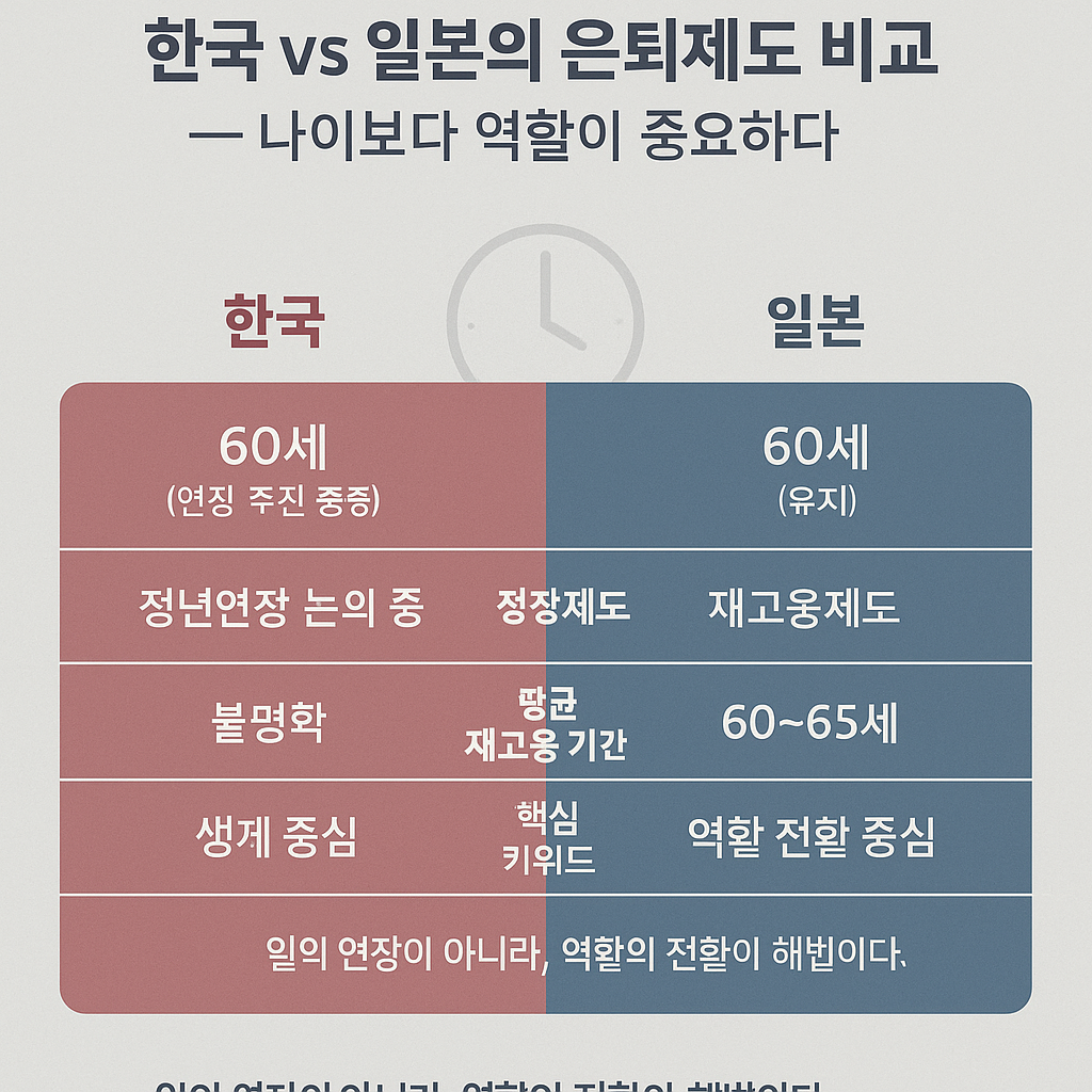 Q1. 서울시의 은퇴연령 65세 인상 방안은 구체적으로 무엇인가요? A. 서울시는 공공기관 정년을 현행 60세에서 65세로 연장하는 방안을 검토 중입니다. 이는 고령층 고용률 제고와 노년층 생계안정을 목표로 하나, 기업계와 청년층의 반발로 논의가 잠정 보류된 상태입니다. Q2. 왜 청년층은 은퇴연장 정책에 반대하나요? A. 청년층은 이를 ‘기회의 지연’으로 받아들입니다. 퇴직자 자리가 줄어들면 신규채용이 늦어지고, 기회비용이 커진다는 인식이 강하기 때문입니다. 또한 고용의 문이 좁아진 현실에서 ‘기성세대 중심 제도’로 보이기 때문입니다. Q3. 노년층은 왜 은퇴연장을 원하나요? A. 기대수명은 늘었지만 노후소득은 부족합니다. 국민연금의 실질소득대체율이 40% 수준에 머물러 있어, 60세 이후에도 소득이 끊기면 생활이 어려운 구조입니다. 따라서 “일할 수 있을 때까지 일하겠다”는 생존적 요구로 이어집니다. Q4. 일본은 어떻게 세대 갈등을 줄였나요? A. 일본은 60세 정년은 유지하되, 기업이 원하면 65세까지 재고용(Reemployment)을 의무화했습니다. 임금은 줄지만, 역할이 바뀌는 구조입니다. ‘자리의 연장’이 아니라 ‘역할의 전환’으로 접근해 세대 간 균형을 유지했습니다. Q5. 한국이 일본처럼 재고용제를 도입하지 못하는 이유는? A. 법적·제도적 인프라가 부족하기 때문입니다. 중소기업의 인건비 부담, 직무체계 경직성, 정규직 중심 고용구조가 큰 장애물로 작용합니다. ‘정년제’ 자체를 완화하지 않고서는 일본식 모델을 적용하기 어렵습니다. Q6. 이 문제를 해결하기 위한 정책적 해법은 무엇인가요? A. 전문가들은 ‘단계적 퇴직제’와 ‘세대혼합형 팀제’를 제안합니다. 퇴직 시점을 유연하게 하고, 시니어의 경험과 청년의 기술을 연결하는 협업 구조를 만들면 세대 간 신뢰자본을 복원할 수 있습니다. Q7. 결국 이 논쟁의 핵심은 무엇인가요? A. 나이의 문제가 아니라 ‘시간과 신뢰의 배분’입니다. 세대 간 감정경제의 회복, 즉 “나는 아직 쓸모 있다”와 “내 미래에도 자리가 있다”는 두 감정이 공존할 수 있을 때 진짜 해법이 시작됩니다.